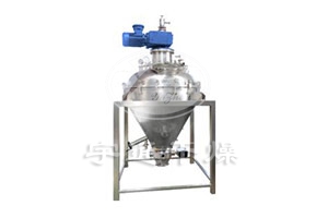 该设备主体立式静止,内部加热的螺带进行圆周搅拌提升运动,物料进入干燥腔体后利用夹套和搅拌螺带对物料接触加热,物料被螺带有序的搅动,翻转、提升、瀑落,使物料不断的与加热腔壁接触而进行强制热交换,受热挥发的溶媒在真空状态下被抽走,从而达到快速干燥的目的。